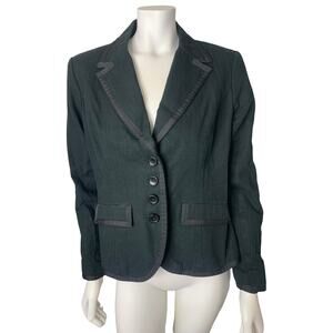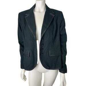 Merona Size M Black Blazer with Satin Trim and Dark Green Undertones
