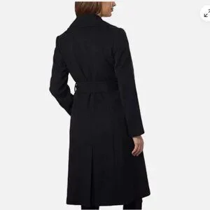 Size 8 George Simonton Couture Women's Cashmere Belted Wrap Bl;ack Coat