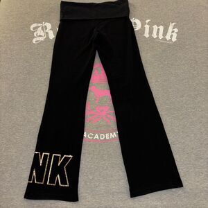 Victoria’s Secret PINK Foldover Flare Leggings Gold Sequin Bling Logo