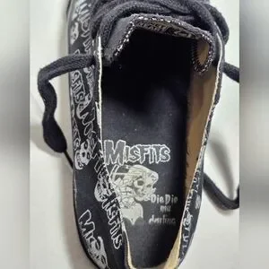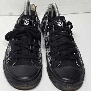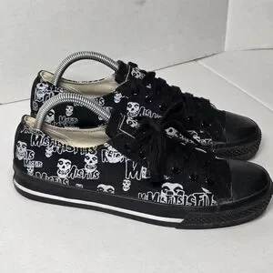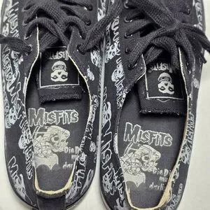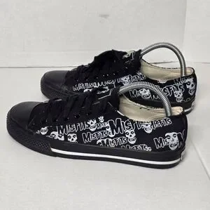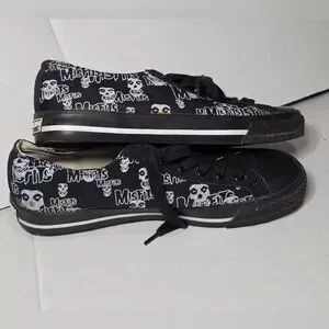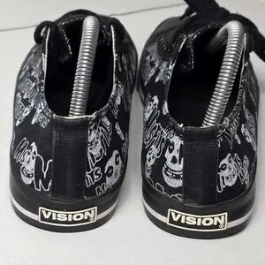 Rare Vintage MisFits sneakers men's size 8. They are early 2000....I believe. Low canvas sneakers. These sneakers have an all over print of the bands iconic Crimson Ghost and MisFits logo on black canvas. The brand is Vision Street Wear. Black toe caps & white stripes on the mid-sole. Vision is on the back. They are in excellent condition for the age. Worn a few times ....sole is in excellent condition. Great for a collector of Punk. The could easily be unisex.