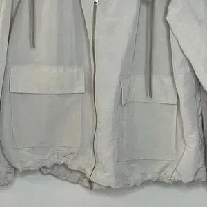 COS Womens XS Beige Hooded Zip Up Utility Jacket Minimalist Stone Windbreaker