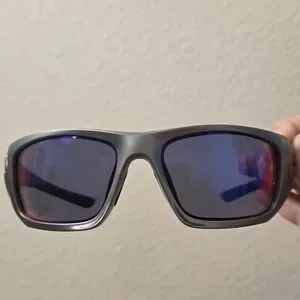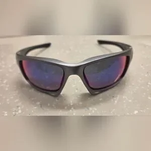 Matte gunmetal frame. Mirrored lenses shift between red and blue. Lightweight sporty style. Great for outdoor activities.
