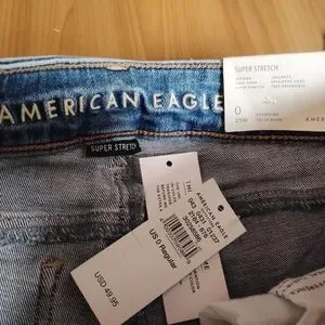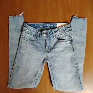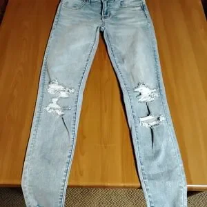 American Eagle Light Blue Ripped Jegging Super Stretch Jeans Size 0 25w