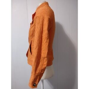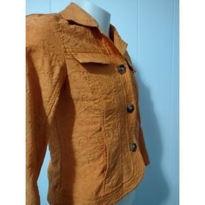 Coldwater Creek Jacket Women Size 8 Textured Floral Matelasse Orange Button Up