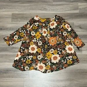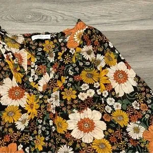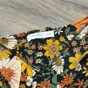 Natural Life L/XL Cotton Tunic in a Bag Top Orange Floral Lightweight Flowy
