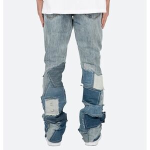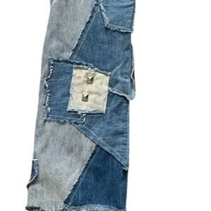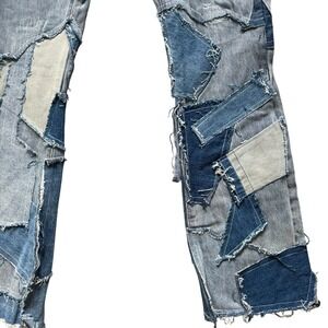 Stylish relaxed fit jeans. Unique patchwork design. Perfect for casual wear.