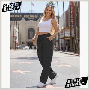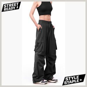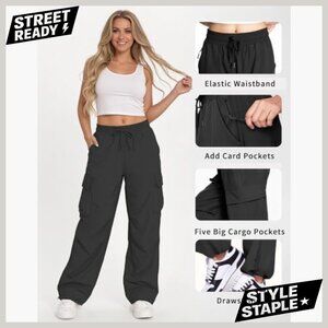 High Waisted Parachute Cargo Pants with 6 Pockets Quick Dry Water-Resistant