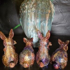 4 HANDCRAFTED Upcycled Bunny Rabbits HANDPAINTED Easter Bunny Home Art Decor