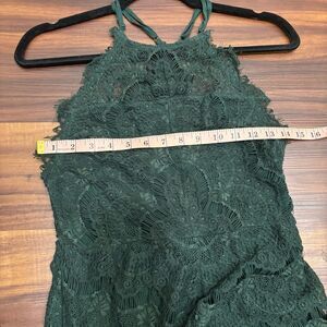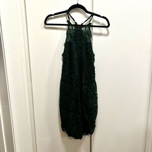 Intimately Free People Women’s Small She’s Got It Green Lace Mini Dress. In excellent condition. Racerback, high neck, bodycon. Romantic, sexy, lacy