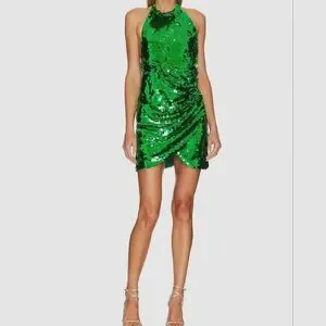 Ronny Kobo Jo Green Sequin Halter Mini Dress Size Xs
