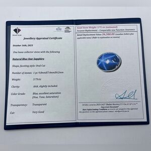Natural Blue Star Sapphire 3.75 cts Oval Cut Loose Stone
