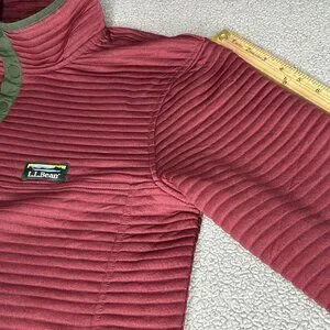 Condition: Excellent. Pre-owned pullover with light overall wear from prior use and laundering. Fabric, seams, collar, cuffs, and hem are clean and intact with no stains, holes, or snags; snaps and pocket openings are secure, and L.L.Bean logos and interior print remain crisp and fully legible. Textured knit shows minor wrinkling from storage but retains its soft feel and structure.