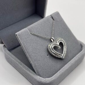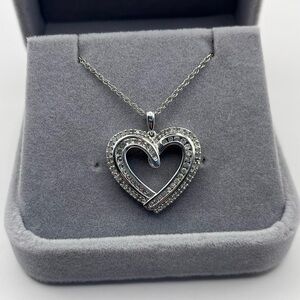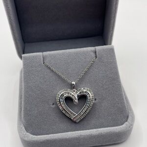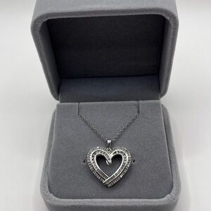 0.50 CT Natural Diamond Large Heart Sterling Silver Necklace