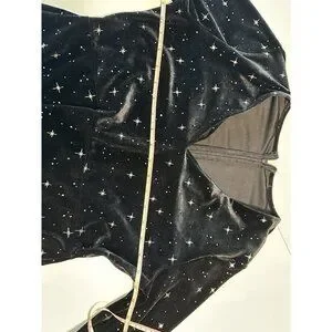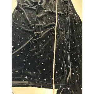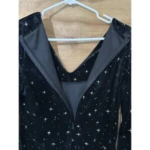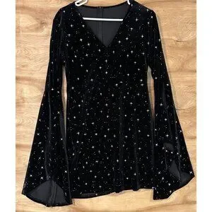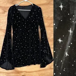 Cider Velvet V Neck Flare Bell Sleeve Sun Moon Celestial Dress Black SZ L
