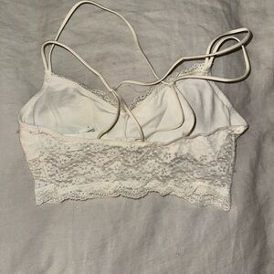 Hollister size small. In good condition! Padded. This elegant lace bralette offers comfort and style. Perfect for layering or wearing on its own, it features a delicate cream color that complements any wardrobe.