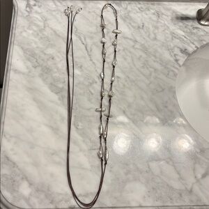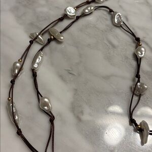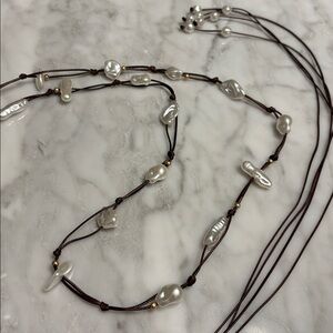🤍Elegant Pearl and Brown String Belt / Necklace