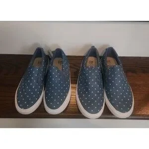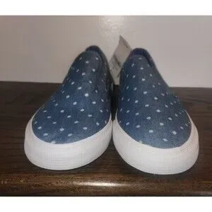 NEW - 2 pairs of Gap Kids Slip On Sneakers in Blue Denim Polka Dot