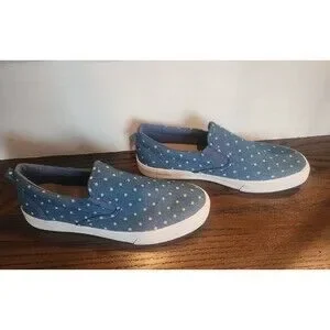 NEW- 2 Pair Lot-GAP Kids Girls Slip-on Sneakers Blue Denim Polka Dot Print-5 & 3