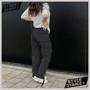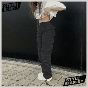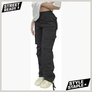 High Waisted Cargo Pants Women Baggy Y2K Straight Wide Leg Streetwear Pockets