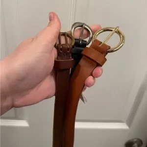 Bundle of 3 womens thin belts size XXL Stylish leather belts in black and brown. Perfect for any outfit. Durable and chic design. All XXL sizing but all from different brands.
