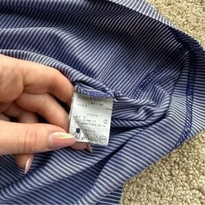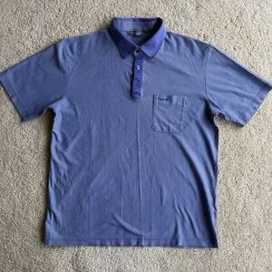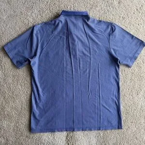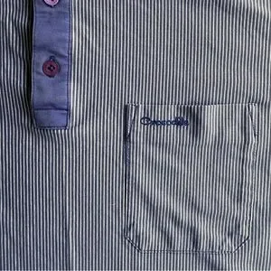 Men’s Crocodile polo shirt in great pre-owned condition. Stylish blue striped design with contrast collar and button placket. Lightweight and breathable fabric, perfect for golf, casual wear, or everyday use.