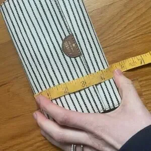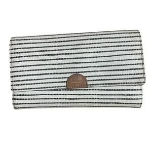Fossil Sydney Flip Clutch Black Stripe Wallet Minimalist Preppy Leather