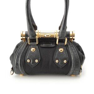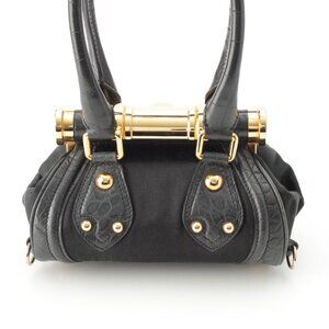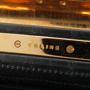 Celine Satin Leather Vintage Triomphe Clasp Croco Shape Press Mini Handbag Black