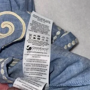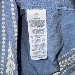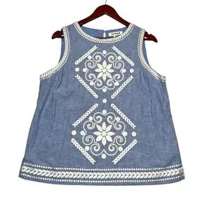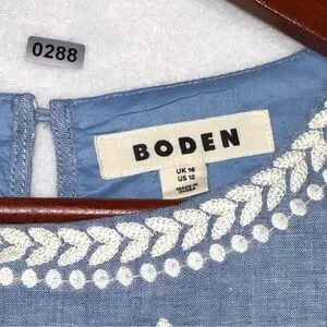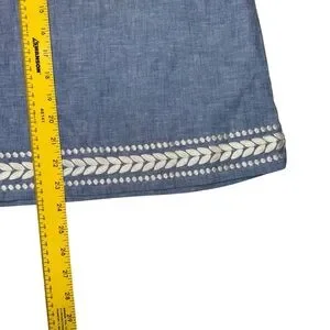 Boden Linen Blend Women’s Embroidered Top in Chambray Blue White size 12