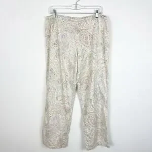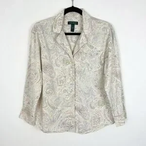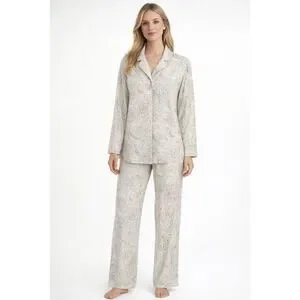15-0060 Lauren Ralph Lauren Women's Paisley Floral Pajama Set - Button Down Collared Top - Elastic Waist Bottoms
