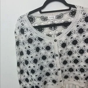 Brand new with orginal packaging. Handmade crochet style with openwork pattern. Button-front closure. Fringed cropped hem
