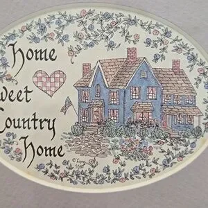 Enhance your space with this charming 'Home Sweet Country Home' art piece. The rustic brown frame adds warmth and character to any room.