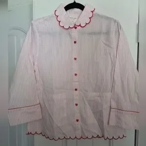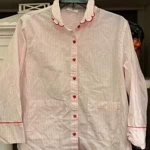 LAKE pajamas Medium M pink striped pj top red piping heart buttons