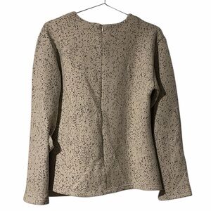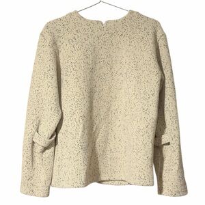 Soft cream speckled crewneck sweater with a relaxed fit. Lightweight knit fabric provides warmth and everyday comfort. Clean neckline and subtle texture for easy styling. Cream color adds versatile, neutral appeal.