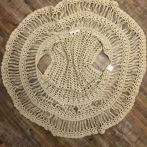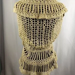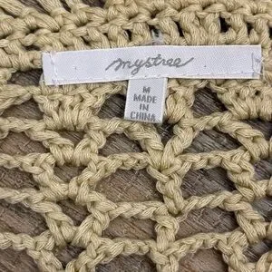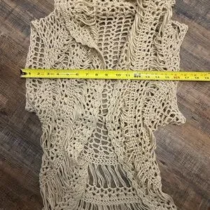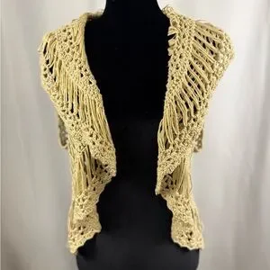 Mystree Boho Crochet Fringe Vest Open Knit Festival Duster Medium