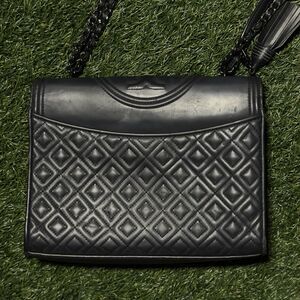 Tory Burch Fleming Matte Black Quilted Leather Shoulder Crossbody Bag Tassel