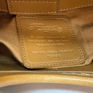 The Fossil handbag is a vintage-inspired piece with a unique Aztec-like pattern in tan color, featuring woven straw and wood handles. This medium-sized bag is perfect for travel, casual outings, or workwear, with a geometric design that adds a touch of retro flair. The double handles in brown leather and gold hardware give it a stylish and classic look, while the lined interior in tan fabric ensures organization and practicality. Ideal for beach trips, vacations, resorts, or cruises, this top handle bag from the brand Fossil is a chic and versatile accessory for women looking to make a fashion statement.