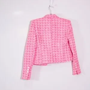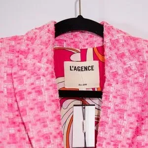 NEW L'Agence Inez Cropped Open Front Tweed Boucle Jacket Bblazer Hot Pink 2