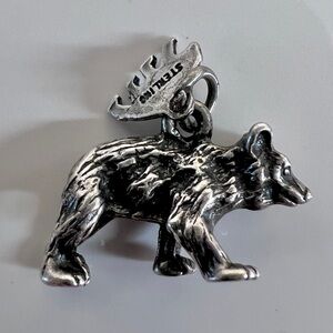 Vintage 3D Grizzly Bear Yellow Stone Sterling Silver 925 Charm