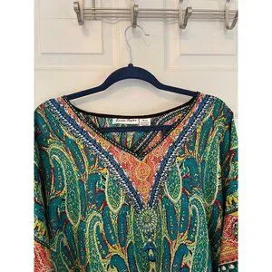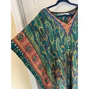 Style Tags: Casual, Spring, Summer, V-neck, Short Sleeve, Lightweight, Vacation, Cover Up, Beach, Ocean, Resort Wear, Cruise, Kaftan, Maxi, Long, Paisley, Hippy