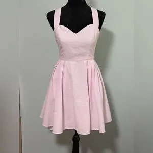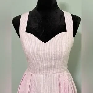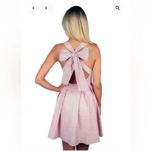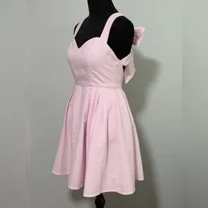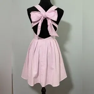 LAUREN JAMES Seersucker Livingston Crossback Back Bow Mini Dress - Small