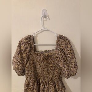 Free the Roses Floral Smocked Boho Dress with puff sleeves and flowers size L