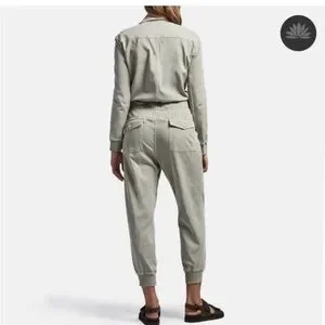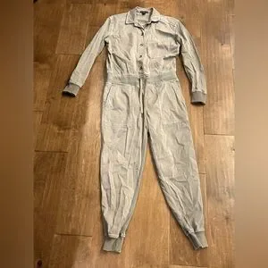 James Perse tan long sleeve button front jogger style jumpsuit XS
