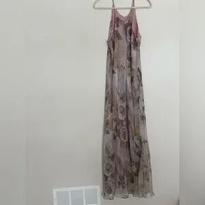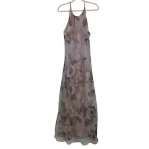 Vintage 90s romantic floral maxi slip dress 6 whimsigoth boho fairy chiffon y2k