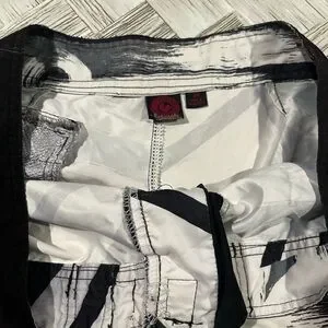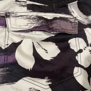 Bold swim shorts with striking black and purple patterns. Ideal for beach adventures.