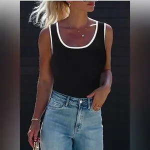 Design & Fabric: tank top for women designed with square neck, so unique with light patchwork design at the neckline, these summer tops for women 2025 are using knitted fabric, breathable, soft and comfortable to wear; Very nice for wearing alone or as a layering piece.