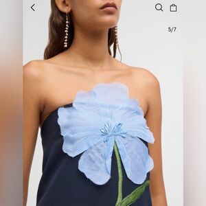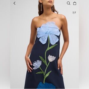 Lela Rose Navy Strapless Floral Appliqué Gown