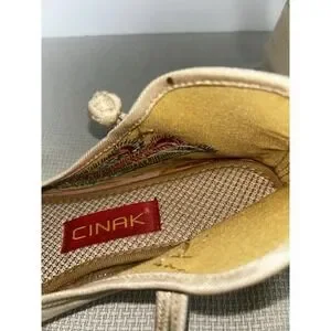 Cinak Cute Embroidered Mary Jane Textile Denim Comfort Beige Size 42. NWOB