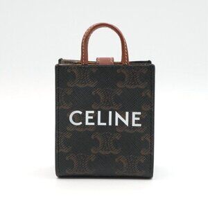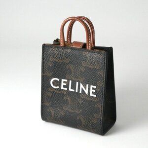 Celine Charm Brown White Gold Triomphe Canvas Logo Micro Vertical Cabas