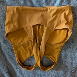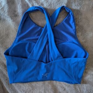 bundle of 3 Arc'teryx soria crossback cropped bra tank top in size XS/S. size tag removed so refer to measurements. revel golden yellow, black, and bright vitality royal blue color. comes with removable pads. great used condition.