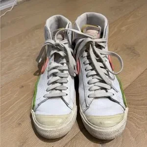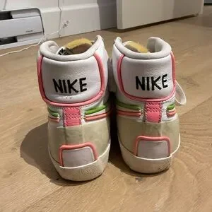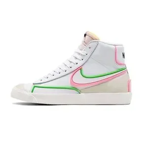 Nike Blazer Mid ‘77 Infinite White High-Top Sneakers, Pink and Electric Green